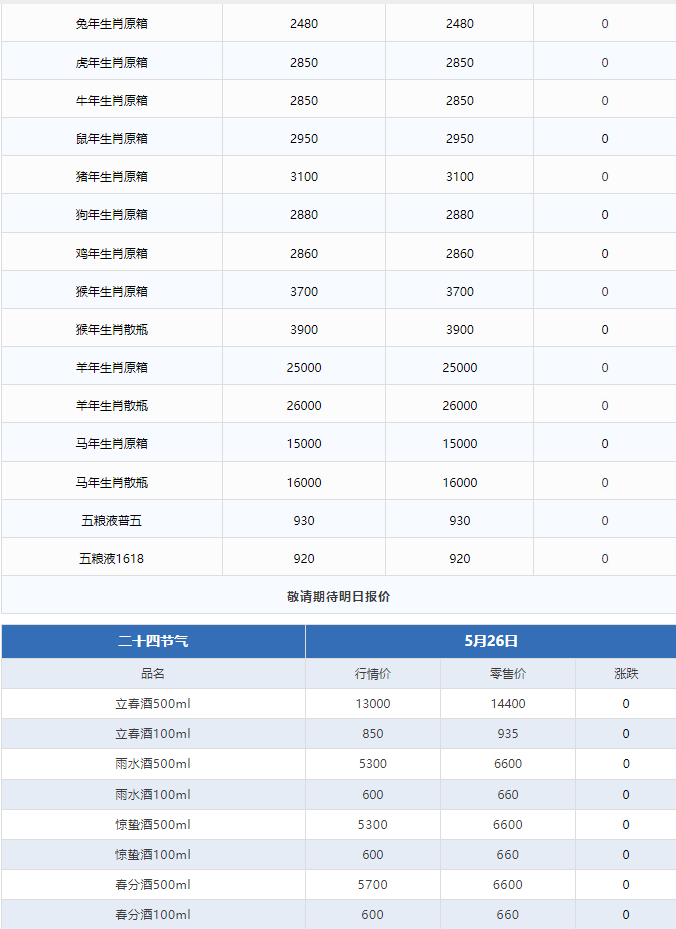 茅台酒5月26日行情价