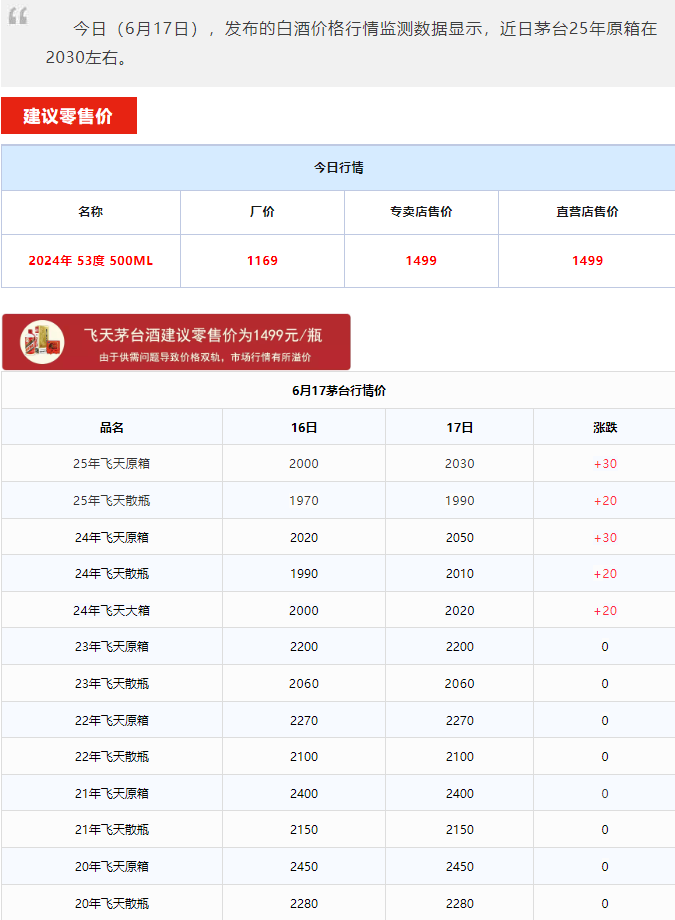 飞天暴涨!茅台酒6月17日行情价