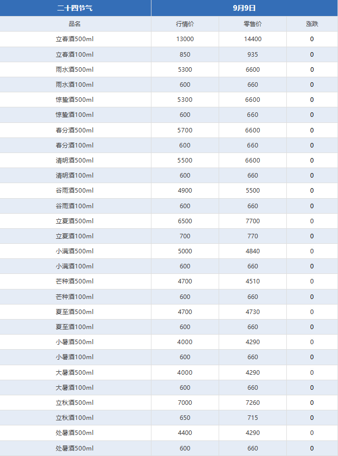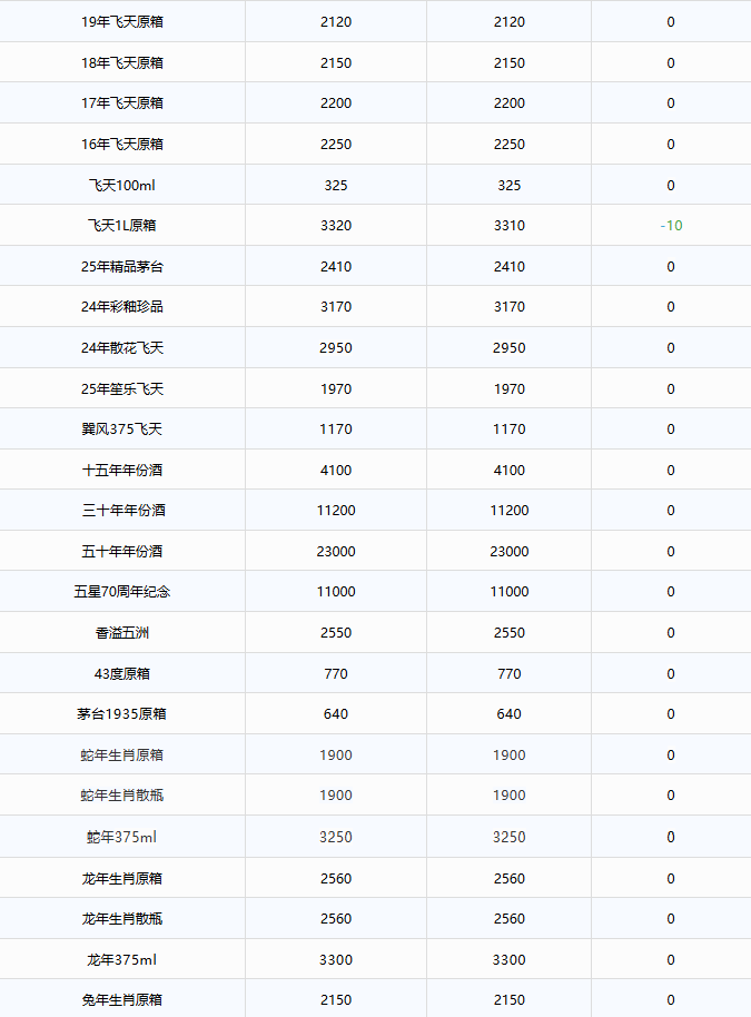 据酒类行情监测平台红色壹号酒业数据,9月7日,25年飞天茅台(53度/500ml)批发参考价散瓶报1820元/瓶,较前一日跌10元;五星70周年纪念报10350元/瓶,较前一日跌650元,单日跌幅5.91%;生肖蛇原箱(简称“蛇茅”)报1900元/瓶,较前一日跌10元,再创上市以来新低,较年初刚上时的高位宣告“腰斩”。