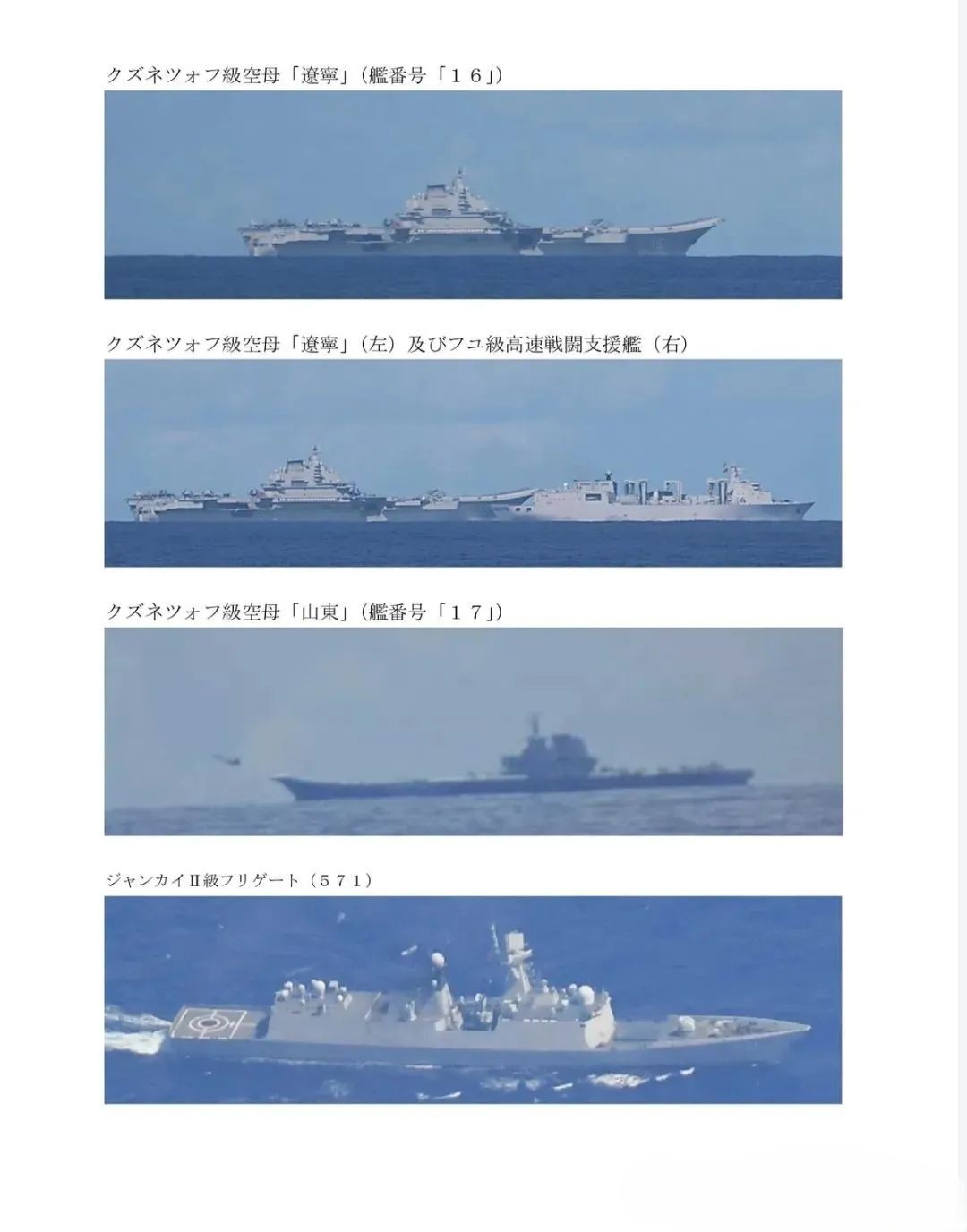 通报文档中海自所拍摄到正在起飞舰载机的山东舰和编队内的571运城舰