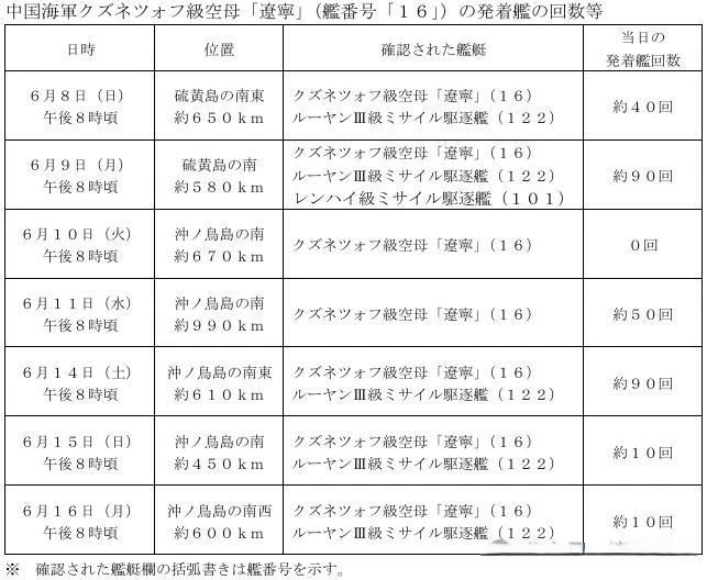 6月9日、6月14日两天,日本海上自卫队观测到了约90架次的舰载机起降活动
