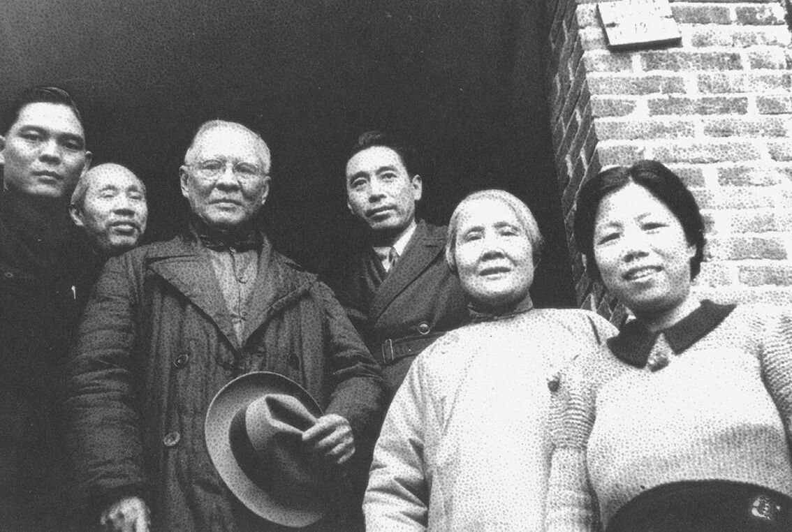 ◆1941年,周恩来和董必武、邓颖超等在重庆红岩村和司徒美堂(左三)、黄兴夫人徐宗汉(右二)合影。