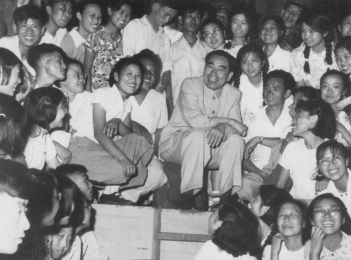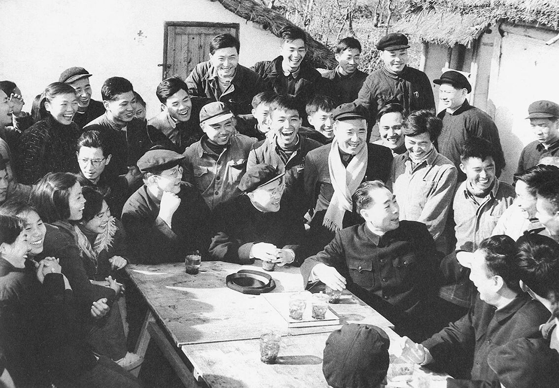 ◆1959年1月,周恩来同在农村锻炼的大学生座谈。
