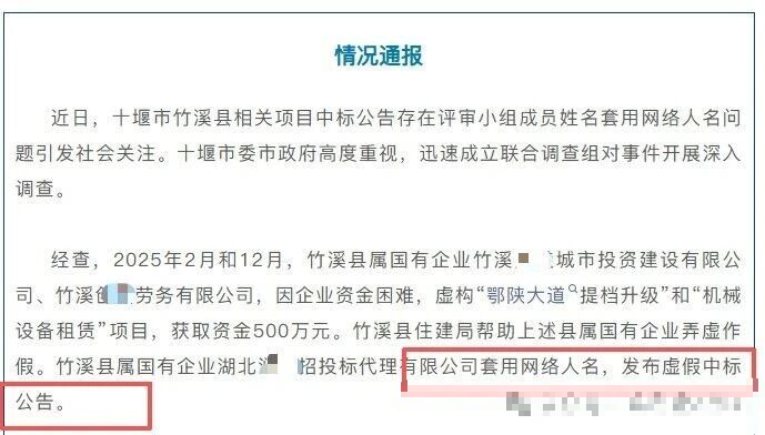 近日,湖北十堰3188万政府采购项目的官方通报为这起荒唐事件画上了阶段性句号——相关干部被免职,虚构项目、套用网络人名发布虚假公告的弄虚作假行为被严肃查处。