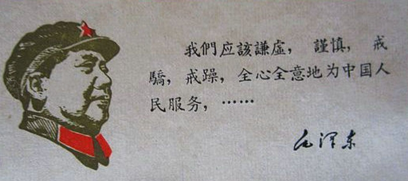 1945年4月23日,抗日战争即将胜利之际,毛主席在“七大”所做的开幕词《两个中国之命运》的最后指出:“我们应该谦虚、谨慎、戒骄、戒躁,全心全意地为中国人民服务。”